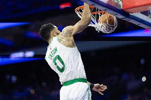 昨天凯尔特人在客场击败国王,比赛第三节塔图姆在投篮时崴脚受伤离场。