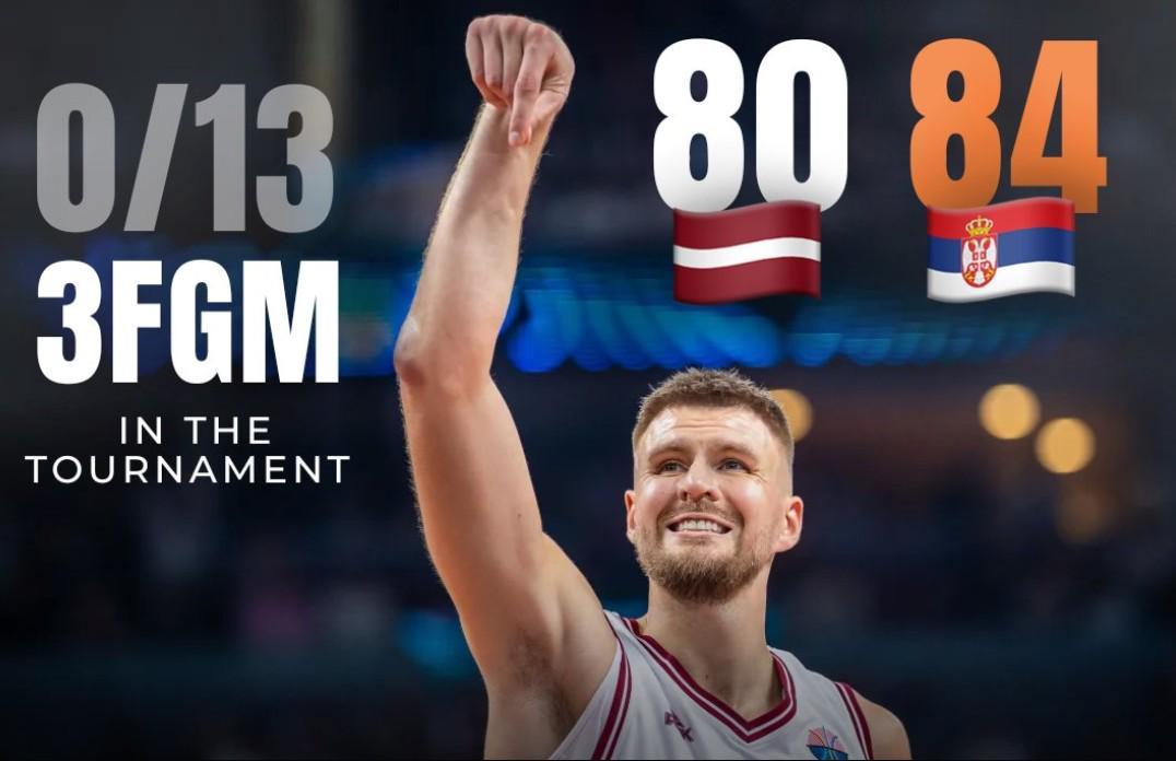 在本场比赛中,拉脱维亚主力中锋波尔津吉斯发挥平平,他在外线的手感非常糟糕,4次三分出手无一命中。据统计,在本届欧锦赛已经进行的三场比赛中,波尔津吉斯在三分线外总计出手了13次,但全部偏出。